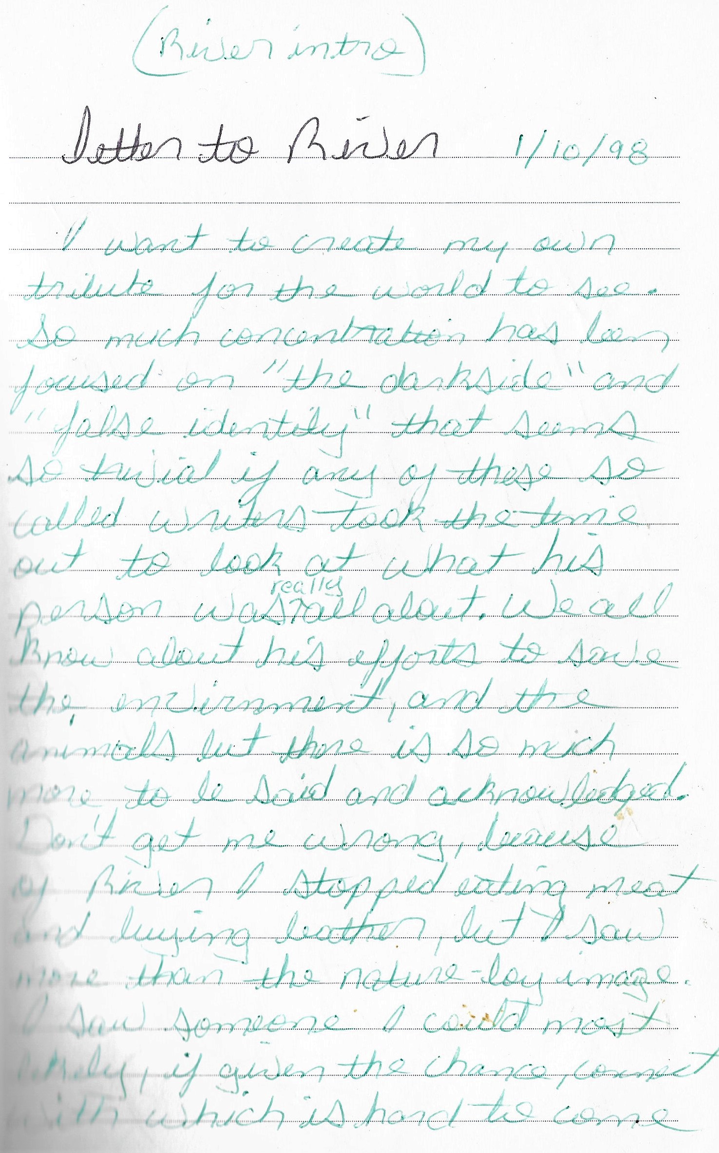 Journal entries from my early twenties dedicated to River.